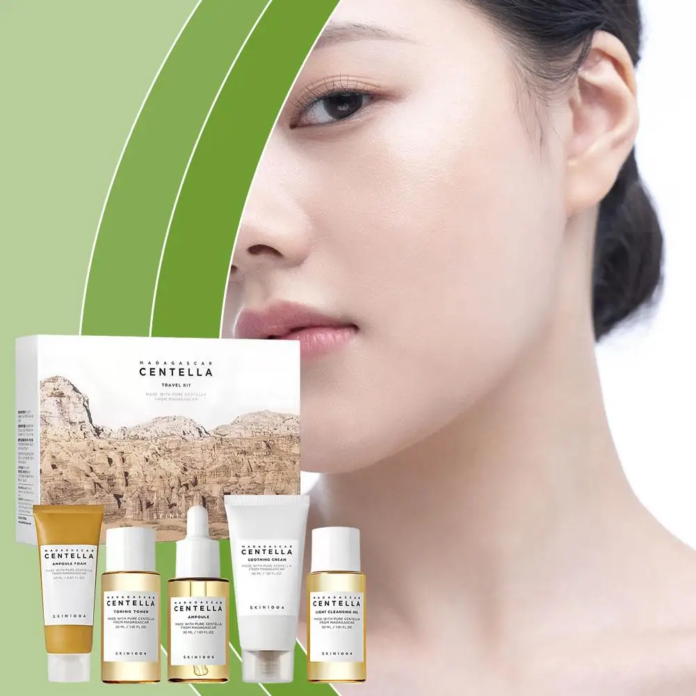5PCS Centella Asiatica Travel Kit Set For Skincare Toner Essence Cream Soothing Sensitive Skin Facial Care Portable Mini Size