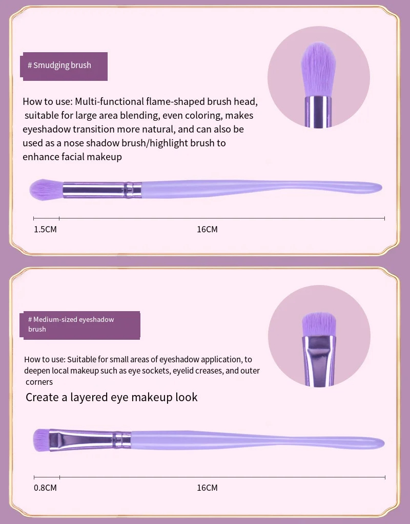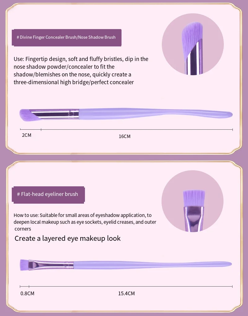 Practical and elegant makeup brush set will definitely be a great addition to your makeup brush collection! With practical design, they are portable and convenient for travel and outdoor makeup use. And the supple brush bristles are so supple and comfortable that they will not hurt your face.