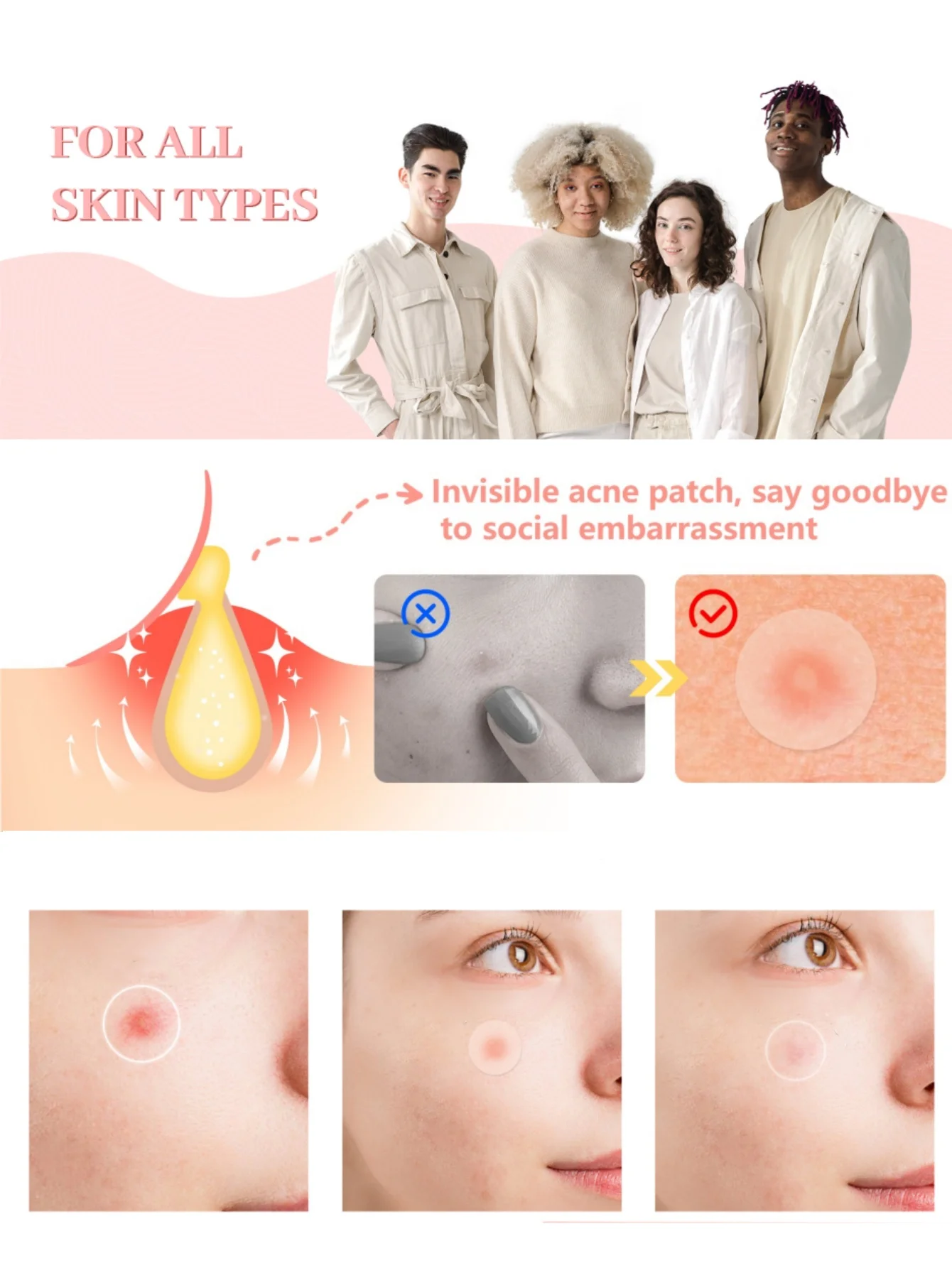 The hydrocolloid acne patches offer an invisible, breathable, and traceless solution, ensuring comfort and discretion.